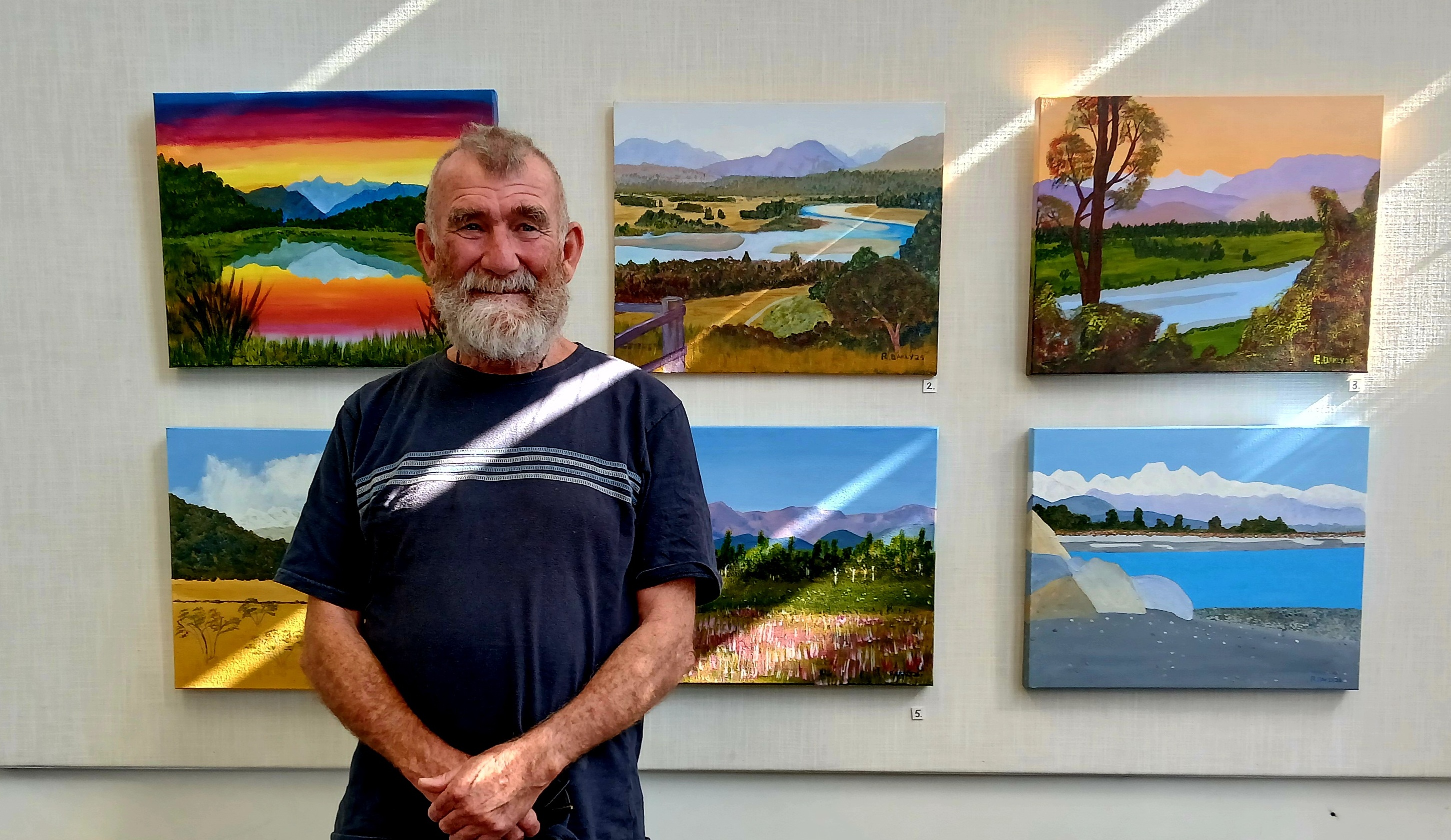 This is Robert Oakly’s first exhibition. He has loved painting since childhood and has returned to it at various times over the past ten years. Encouraged by Westland District library staff to exhibit, Robert has brought together this collection of new artworks on canvas.